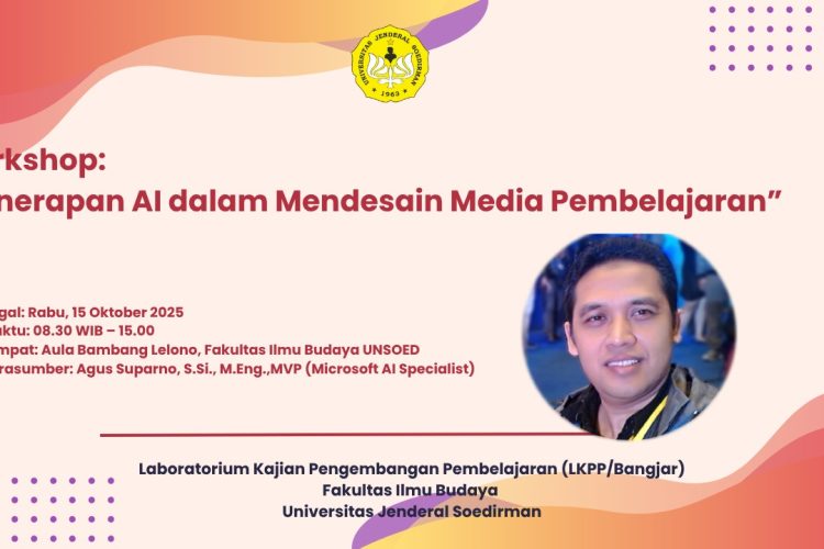 Workshop “Penerapan AI dalam Mendesain Media Pembelajaran” di FIB UNSOED: Dorong Inovasi Pembelajaran Berbasis Teknologi Purwokerto, 15 Oktober 2025 — Fakultas Ilmu Budaya (FIB) Universitas Jenderal Soedirman sukses menyelenggarakan Workshop