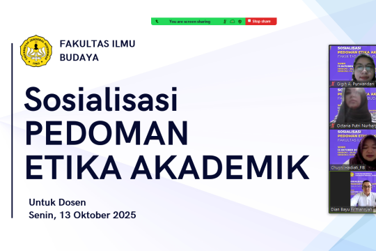 Purwokerto, 13 Oktober 2025 — Fakultas Ilmu Budaya Universitas Jenderal Soedirman (FIB UNSOED) menyelenggarakan kegiatan Sosialisasi Pedoman Etika Akademik...