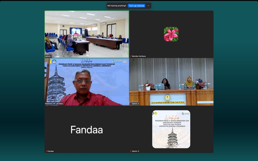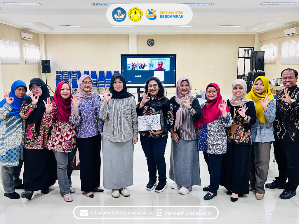 Purwokerto, 1 Oktober 2025 – Fakultas Ilmu Budaya Universitas Jenderal Soedirman (FIB Unsoed) menyelenggarakan Workshop Rencana Pendirian Program Studi S1 Bahasa Mandarin dan Kebudayaan Tiongkok pada Rabu, 1 Oktober 2025. Kegiatan ini berlangsung secara hybrid di Aula Bambang Lelono FIB Unsoed serta melalui Zoom Meeting.