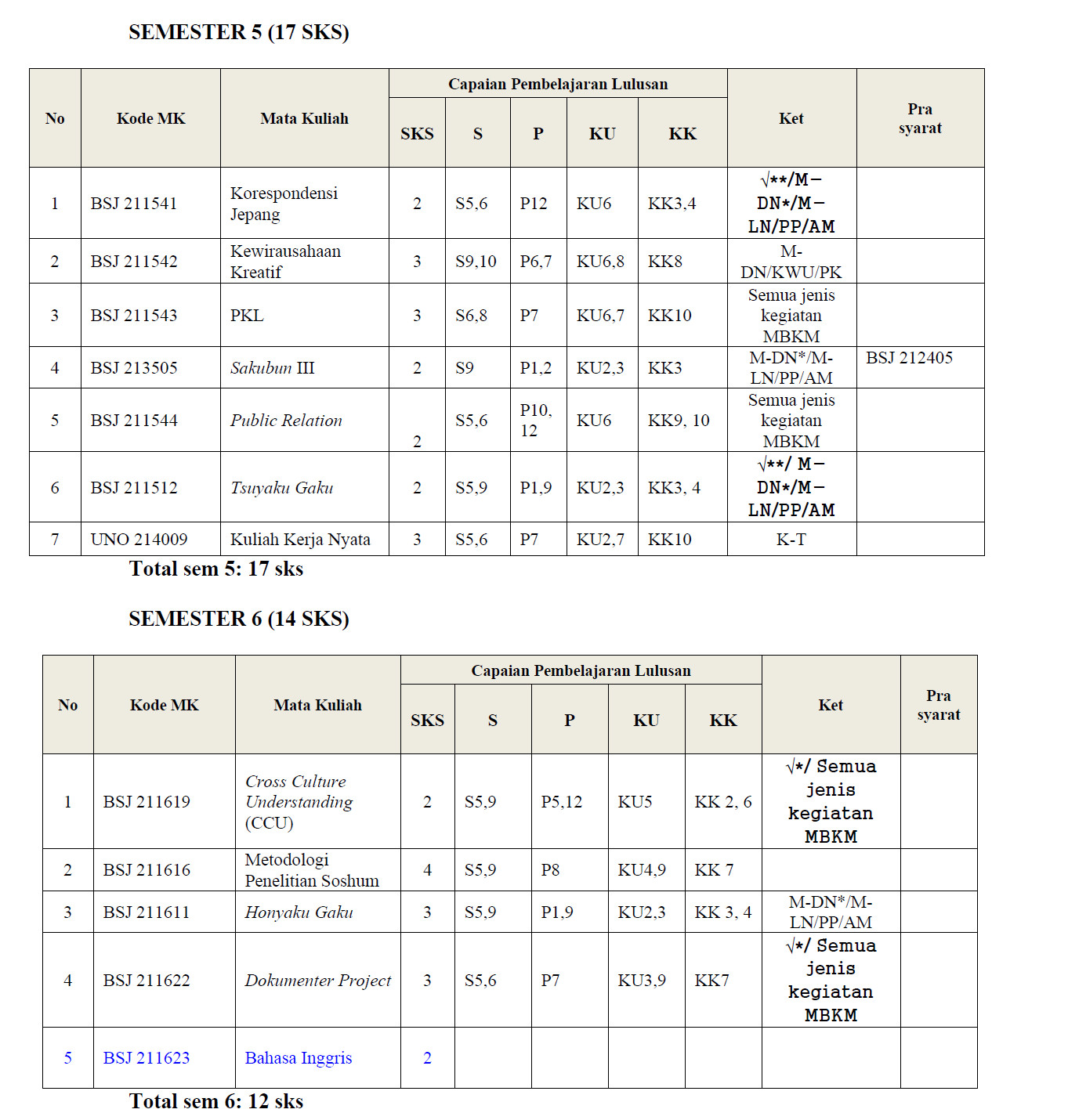 M-DN*Â Â Â Â Â Â Â Â Â Â Â : mata kuliah konversi kegiatan MBKM magang dalam negeri yang linear dengan keilmuan