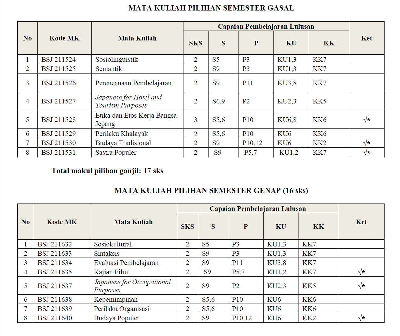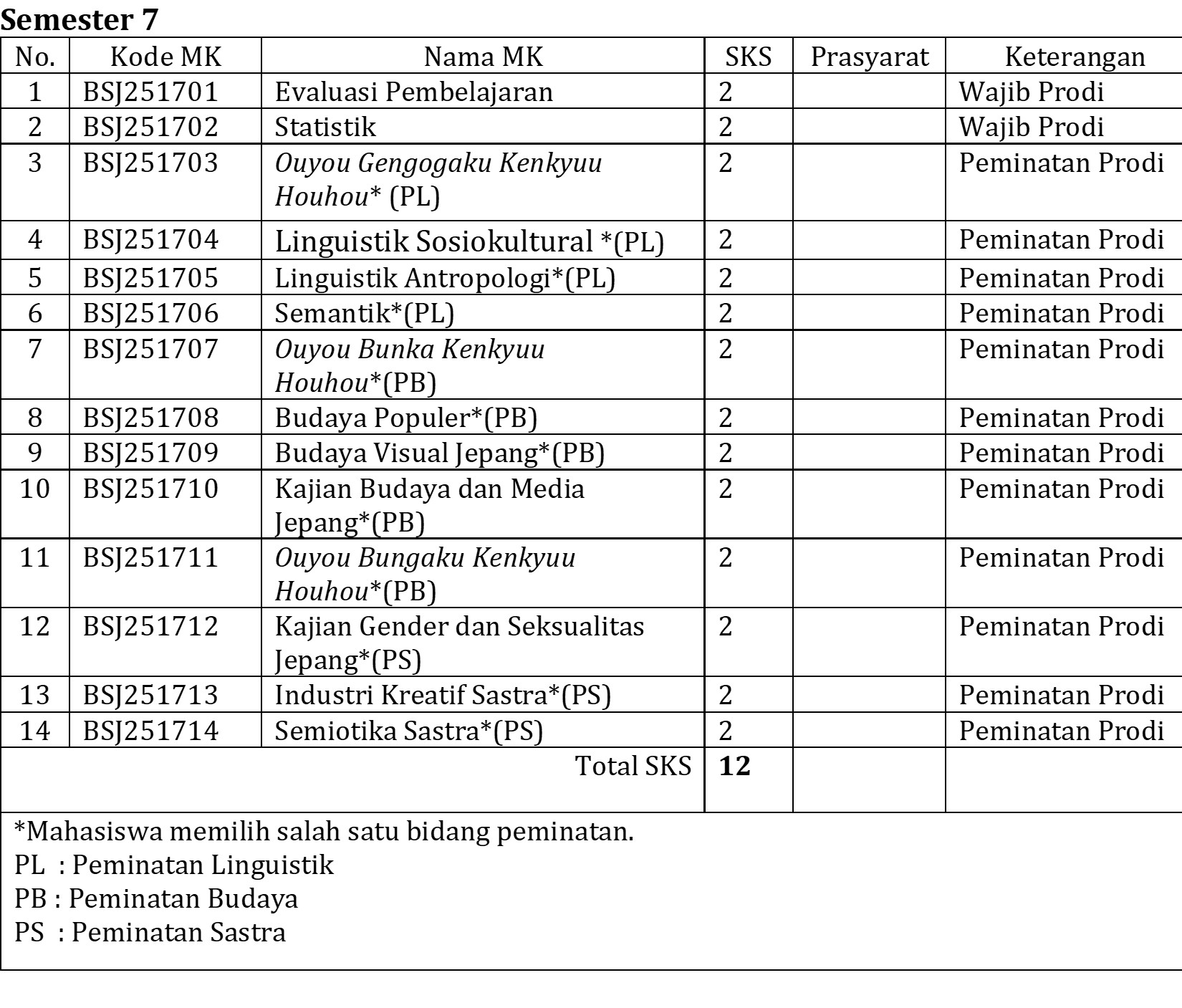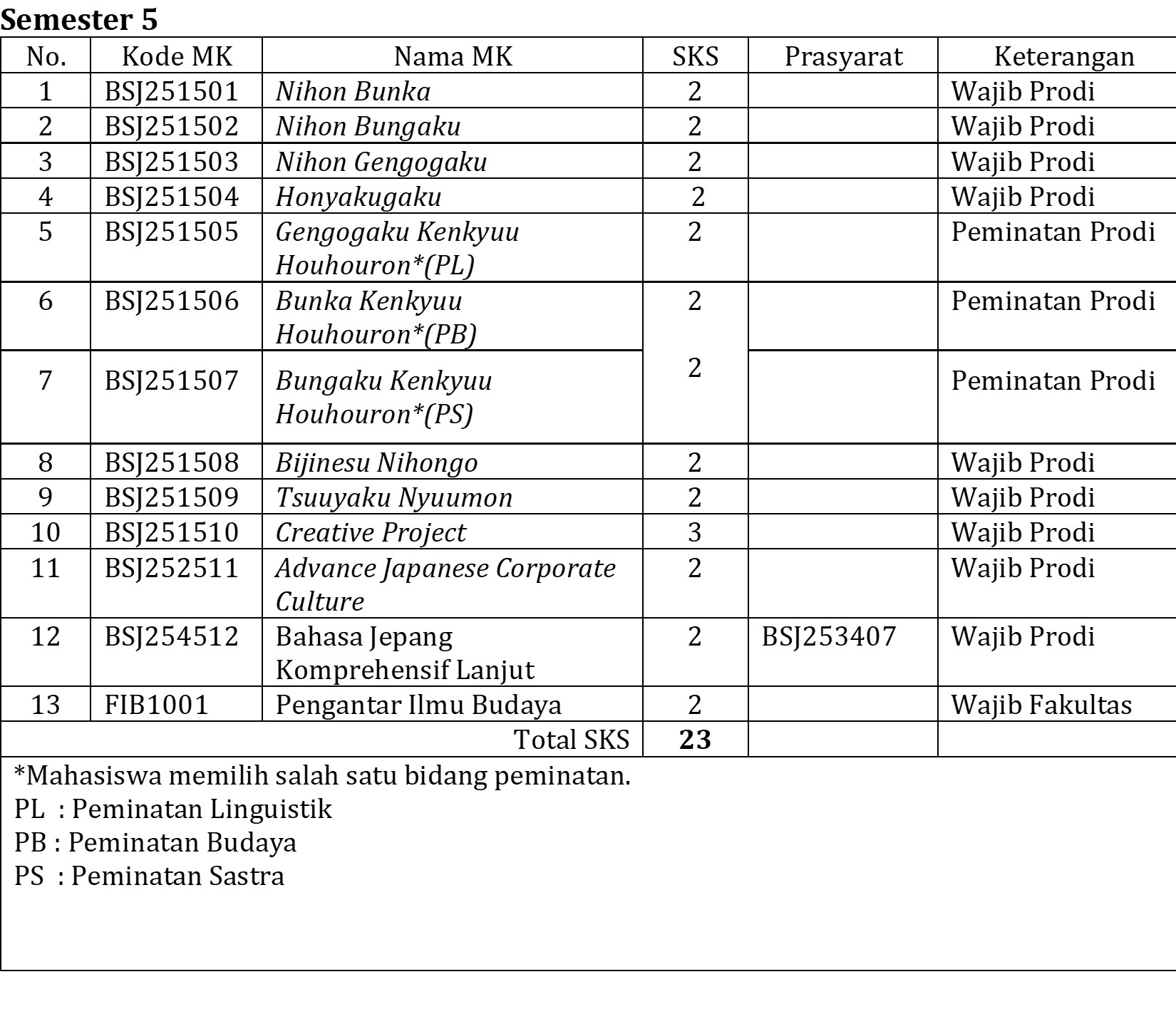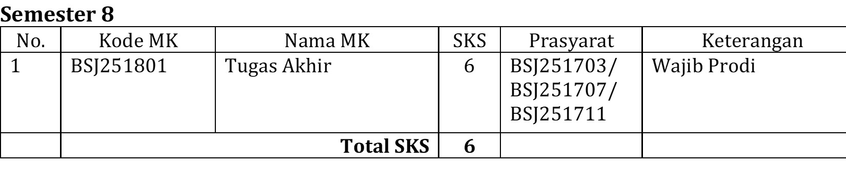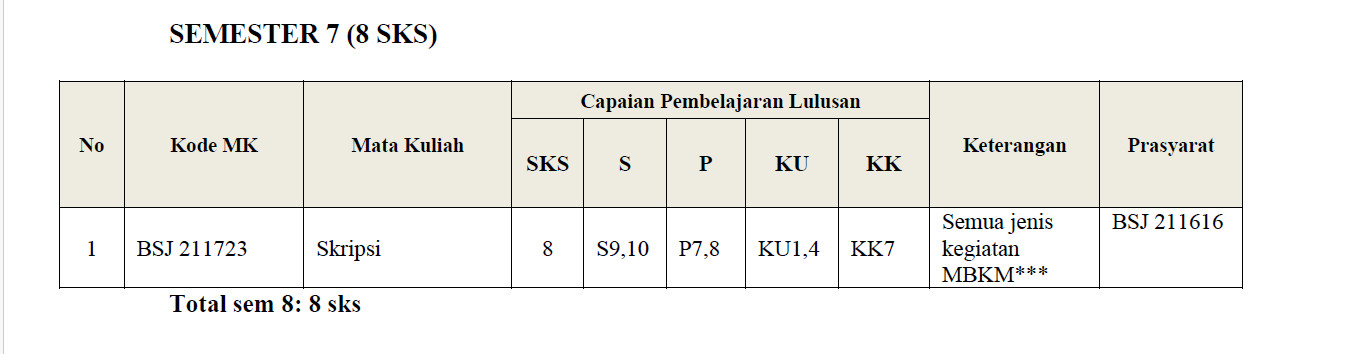 - Jumlah SKS: 197 SKS terdiri atas 143 SKS MK Wajib dan 54 SKS MK Peminatan Prodi